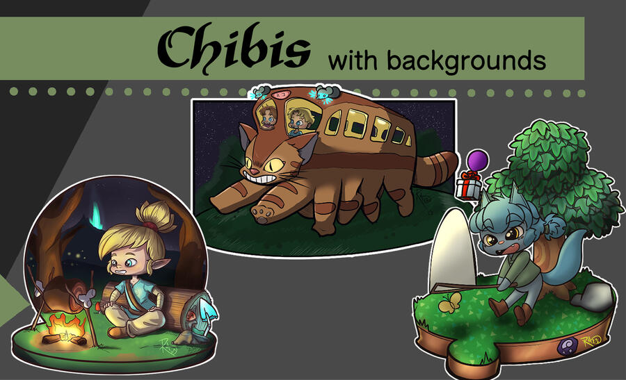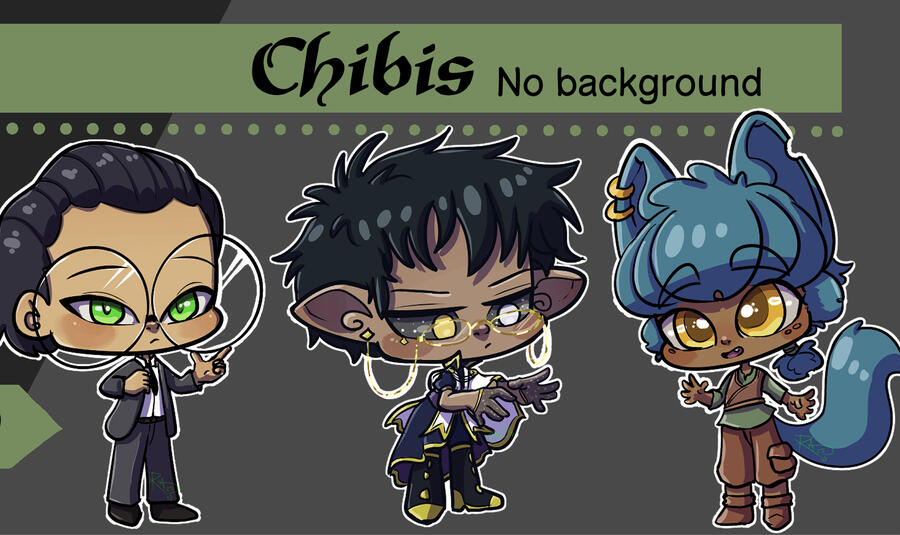All chibis start at $30 and are fully colored.Adding a background starts at and additional $10